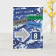 Um cartão de aniversário de 8º jogador azul para rapazes. Ele apresenta um design azul de jogo de vídeo em pixel na parte frontal e traseira da placa. O dentro lê uma mensagem de cartão de aniversário nivelado por cima que pode ser facilmente personalizada se desejado. Este moderno cartão de aniversário do 8º jogador faria com que o excelente ficasse em paz para filho, neto, sobrinho, etc.