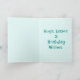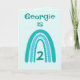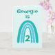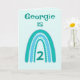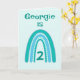 Este doce design do arco-íris pode ser personalizado com Nome e Idade. Bonito turquesa, cor azul e verde. O dentro verso pode ser mantido, alterado ou removido seguindo o prompt 'personalize'.