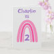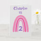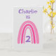 Este doce design do arco-íris pode ser personalizado com Nome e Idade. Bonito cores rosa e púrpura. O dentro verso pode ser mantido, alterado ou removido seguindo o prompt 'personalize'.