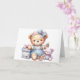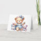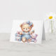 Cartão de Aniversário Feliz de Bebê. Bonito Urso de Teddy sentado com presentes e brinquedos. Um cartão de criança adorável. Este cartão é vazio de dentro para sua própria mensagem. Também disponível como download Digital para transferência para outros produtos.