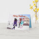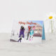 Cartão de Aniversário de Inverno. Para garotas afro-americanas apreciam o inverno na neve na moda.