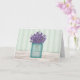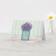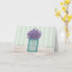 Este Cartão de Aniversário Azul Mason Violets Violets apresenta violetas delicadas num jarro de mason azul vintage.