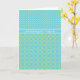Um cartão de aniversário chic com um padrão de Bolinhas e um padrão Daffodil em amarelo pálido em um fundo turquesa.
