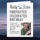 Cartão de aniversário na forma de jornal. Cartão de aniversário de bombeiro. Sua escolha de nome e foto foram adicionadas como a pessoa cujo aniversário é.