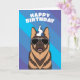 Deseje-lhes um Feliz Aniversário com este doce cartão de saudação de German shepherd estilo pop. Quer sejam amantes de cães ou donos, o vosso amigo ou amado sorri quando recebem este cartão de aniversário do cão. O feliz texto de aniversário na frente do cartão dobrado pode ser facilmente editado para dizer qualquer mensagem que você gostaria, e até temos cinco diferentes planos coloridos para você escolher, vermelho, verde, rosa, azul ou laranja. Se você prefere por que não ser criativo e apagar nosso fundo e fazer o seu?