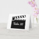Este design de cartão apresenta uma prancheta preta e branca que você encontraria usada em um filme ou num televisor, usada para indicar o início de uma tomada; a filmagem de uma cena e usada para permitir que o som e o vídeo sejam sincronizados no palco de edição. A ardósia é preta, com banda de branco e preto ao longo das bordas onde o topo dobradiço encontra a ardósia inferior. Fácil de personalizar. Use as opções personalizadas para personalizar ou usar o botão Personalizar para personalizar totalmente o design com sua própria escolha de texto no slate. O texto diz "Tome 30", mas pode mudá-lo para qualquer idade neste cartão de aniversário.