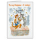 Um cartão de aniversário do divertimento para um sobrinho com os dois gatos legal, canto "feliz aniversario" do adolescente de 11 anos, acompanhado da guitarra e dos maracas; de uma ilustração pintado à mão por Judy Adamson. Você pode mudar a mensagem interna se você deseja.