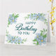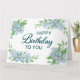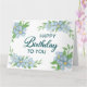 Cartão de Aniversário da Flor Azul de Aquarela. este design apresenta ilustrações em aquarela de flores azuis com a palavra Feliz Aniversário para Você. Personalize alterando as palavras "Para você" pelo seu nome.