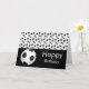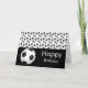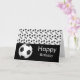 Um cartão de aniversário de excelente para quem ama futebol. Ele apresenta parte inferior preta e parte superior branca. Pequenas bolas de futebol cobrir o topo com uma bola maior no fundo. Você pode personalizar o texto na frente e no dentro.