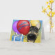 Adorável German shepherd Grande Nose com um presente de aniversário e segurando balões em sua boca. Balão lê Rappy Rirthday!