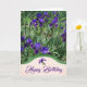 Este cartão de flor roxo foi criado de uma das minhas fotografias originais de íris roxos. O jardim que você vê cresce ao longo da minha calçada. A foto foi capturada quando as flores começaram a florescer. Personalize este cartão com as suas próprias palavras, este cartão pode ser utilizado em diversas ocasiões.