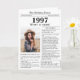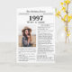 Diga feliz aniversário com este único cartão de aniversário estilo Newspaper, incluindo uma foto do receptor e uma coleção de fatos divertidos e notícias mundiais de 1997. Seja criativo e crie uma manutenção personalizada. Projetado para se assemelhar a um jornal antigo no estilo clássico preto e branco. Uma maneira fofa e divertida de celebrar os anos 90!