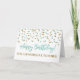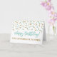 Cartão de aniversário para professor com padrão de confete brilhante moderno turquesa e dourado. Observe que o efeito brilhante é apenas efeito fotográfico.