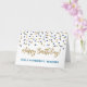 Cartão de aniversário para o professor com o padrão de confete de ouro e moderno e azul. Observe que o efeito de brilho é apenas efeito fotográfico.