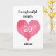 Um cartão de aniversário de 20 personalizado para ela que apresenta um coração de aquarela vermelho na frente. Você será capaz de personalizar facilmente a frente do cartão de aniversário com sua idade e nome. Este cartão personalizado de aniversário de 20 cardíaco seria um cartão de excelente de aniversário para ela.