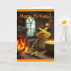 Este cartão de aniversário apresenta um sapo tomando café perto do fogo.