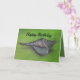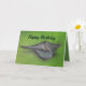 A bonito pintura aquosa de uma concha azul sobre um fundo verde brilhante com o texto feliz aniversário em azul escuro faz com que esta praia life ocean tenha o seu cartão de aniversário temático.