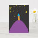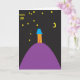 Cartão do sinal da estrela da astrologia que mostra a constelação de Aquário no céu acima de uma casa misteriosa em um monte. Uma lua crescente ilumina a cena. Algumas das qualidades do Aquário são alistadas dentro do cartão. São: - original, idealista, rebelde, amigável, de mente aberta, abertura de caminhos, inovativa.