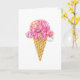 O cartão de saudação de sorvetes de aniversário é tão deliciosamente doce! O cone de Sorvete transborda com flores rosa e corações para celebrar um dia muito especial.Dentro Verso: Desejo-te um bom dia, Feliz aniversário! trabalho de arte de aquarela original e design por Audrey Ascenzo.