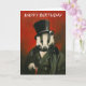 Este cartão de aniversário é ilustrado com um texugo vitoriano em um chapéu e um fato inteligente.