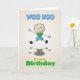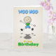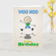 Um desenho de um garoto pulando. As palavras WOO HOO no topo e é o seu aniversário no fundo. Dentro você pode personalizá-lo com o nome da criança. Perfeito para aquele menino muito especial