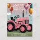 Convites e Anúncios de Cartão de Aniversário do Trator Rosa Bonito.