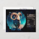 Celebre o espírito ardente de Áries com este cartão-postal de aniversário do Zodíaco, lindamente desenhado. Perfeito para aqueles nascidos entre 21 de março e 19 de abril, este cartão-postal apresenta uma obra de arte intrincada que mostra a constelação e o símbolo de Áries.