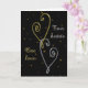 Este é um cartão de aniversário de casamento elegante, com uma imagem de um coração em espiral dourado entrelaçado com um coração prateado, colocado sobre um dramático fundo preto. O fundo está repleto de estrelas douradas e o texto diz Dois corações, Um amor. O texto interno pode ser personalizado. Lindo! *Os clipes de imagem usados neste design são de propriedade da Encore Software, Inc., que permite o uso para os seus licenciados. Todos os direitos reservados.