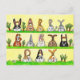 O cartão apresenta três fileiras de coelhos de desenho animado fofos em cores diferentes. Eles escrevem Feliz Aniversário com suas orelhas longas de coelho.