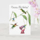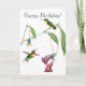 As belas artes botânicas do vintage lindo de colibris e de flores exóticos do habitat estão neste cartão do feliz aniversario.
