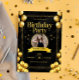 Cartão de aniversário Elegante Dourado preto