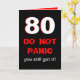 Precise um cartão de aniversário engraçado do 80 para homens? Este é o cartão para você. Este cartão do marco miliário tem uns 80 grandes com as palavras "NÃO SE APAVORA você ainda obteve-o" na parte dianteira. O engraçado é mantido para dentro. Copyright Kathy Henis
