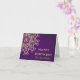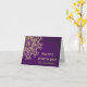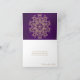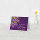 Um belo cartão de aniversário roxo ametista e dourado com um padrão de medalhão de sari ornamental exótico e étnico de luxo e sofisticado inspirado na Índia com um design de explosão solar floral e lótus. Este cartão de aniversário elegante e bonito no estilo indiano moderno tem um tema e aparência formal, do leste asiático, indonésio e/ou árabe marroquino das noites ou Aladdin. Design © Chrissy H. Studios, LLC. Todos os direitos reservados.