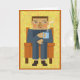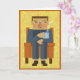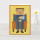 Na moda sentado em poltrona com uma caneca de café quente a vapor Mude as palavras dentro para personalizar