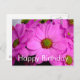 Cartaz feliz de aniversário com uma foto brilhante e colorida de margarida. Daisy é a flor de nascimento de abril e representa pureza, beleza e inocência. Você pode facilmente alterar a cor, a fonte, o tamanho e a posição do texto clicando no botão personalizar.