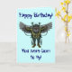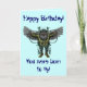 Cartão de aniversário feliz, cara voadora e engraç