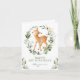Cartão de aniversário moderno com tema florestal apresentando um adorável cervo bebê e vegetação elegante em aquarela