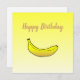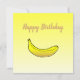 Cartão de aniversário amarelo feliz com uma banana amarela.