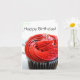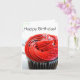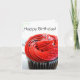 Cartão de Aniversário Feliz com Fotografia do Cupcake Vermelho.