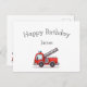 Feliz cartão de aniversário para um amigo que gosta de caminhões de bombeiros:)