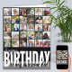 Crie seu próprio cartão de aniversário feliz. O modelo de fotografia está pronto para adicionar 31 das suas imagens favoritas, 30 das quais são apresentadas em formato quadrado/instagrama numa colagem de fotografias de estilo grelha simples e a principal está num formato de retrato de formato de quadro no dentro. A frente do cartão de aniversário é escrita com a moderna tipografia e a escrita de pincel. Atualmente ele diz "feliz aniversário para meu pai incrível" com blocos coloridos estilizando em cinzas, preto e branco. Você pode editar o texto personalizado na frente e também pode personalizar o dentro de saudação.