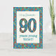 Um Cartão de Aniversário específico da Idade bonito para uma avó de 90 anos, com o número 90 e a fronteira preenchida com um padrão retrorfloral colorido num fundo de chá. O padrão floral é parte da coleção 'Impressão de avó' Posh & Painterly, de uma colagem de papel pintada manualmente por Judy Adamson. Este design ajustado todos os tamanhos da placa de saudação.