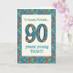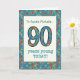 Um cartão de aniversário específico à idade bonito para que um de noventa anos personalize, com o número 90 e a beira enchida com um teste padrão floral retro colorido em um fundo da cerceta. O teste padrão floral é parte da "da coleção fino & Painterly do impressão avó", de uma colagem de papel pintado à mão por Judy Adamson. Este design caberá todos os tamanhos do cartão.