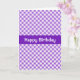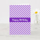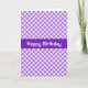 Cartão de aniversário com padrão de gingham roxo. ©Janet Palaggi