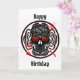 Cartão de aniversário gótico do crânio doce, saudação escura e alternativo. Arte digital de fantasia sobrenatural com um dia floral negro do crânio do estilo morto e esfregões de sangue, voltado para adolescentes. A mensagem principal diz "Parabéns". Este cartão é vazio de dentro para sua própria mensagem.