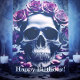 Uma pintura escura e gótica de um crânio humano rodeado por rosas e pétalas góticas pidas, apresentando uma atmosfera gótica dessaturada e de outro mundo, este cartão de aniversário é perfeito para amantes de crânios góticos escuros e flores e rosas góticos românticos escuros, dando uma mensagem de aniversário única com este Rosa Gótico e Cartão de Nascimento Gótico completo com texto e imagens editáveis, personalize para suas necessidades.