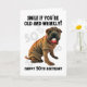 Um cartão de aniversário de 50 anos humorístico com um sorriso de cão-de-pera-rapado, sorria se for velho e enrugado, espero que este cartão de saudação divertido com um sorriso no rosto