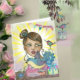 Celebre o dia especial de sua irmã com este charmoso cartão de aniversário artístico! Apresentando uma ilustração deliciosa, pintada à mão, de uma garota caprichosa em meio a uma cena festiva com um bolo de aniversário, presentes coloridos, e banners comemorativos, esta carta foi projetada para trazer um grande sorriso para seu rosto. Você pode até personalizar o nome no bolo e a data (como mostra "Melanie, 15 de junho") para torná-lo realmente pessoal. Uma maneira única e sincera de desejar a sua irmã um aniversário muito feliz!