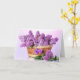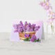 O cartão de aniversário é mostrado com lindos lilases em uma impressão de fotos de cesta. Personalize este cartão ou comprar como está. A placa tem um dentro de mensagem especial.