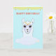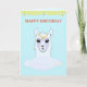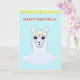 Llama desenhando um cartão de aniversário de turquesa leve. Todos os textos podem ser personalizados.